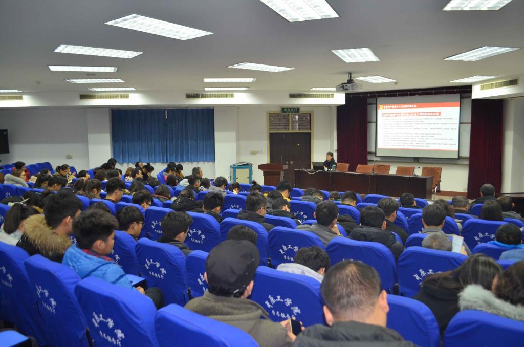 虎业勤教授作了题为“新时代新思想新目标新征程——深入学习贯彻党的十九大精神”的宣讲报告,从党的十九大的重要成果、重大意义,党的十九大的鲜明主题,习近平新时代中国特色社会主义思想,中国特色社会主义进入新时代,全面建设社会主义现代化国家宏伟蓝图,“五位一体”总体布局及各领域重大任务举措,推动全面从严治党向纵深发展等七个方面,对党的十九大精神作了全面、深入的解读。宣讲报告更以“新时代新思想新目标新征程”等“四个新”帮助党员干部、师生全面把握党的十九大报告主要内容及特点。