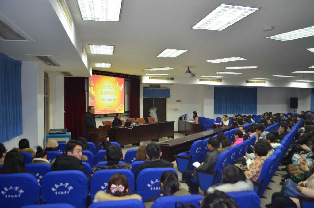12月12日,m88官网在4号楼311学术报告厅举行党的十九大精神集中宣讲报告会,邀请马克思主义m88官网虎业勤教授来m88官网作专题辅导报告。辅导报告会由m88官网张启峰书记主持,m88官网200多名师生聆听。