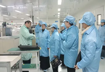 调研伊始,郑州新开普公司总监于照永带领m88官网老师们实地参观新开普智能制造产业园区,先后走进成品智能仓、电磁兼容实验室、环境实验室、SMT焊接车间及装配车间,详细讲解企业智能化生产流程、核心技术研发成果与各类智能终端产品,让老师们直观感受企业前沿技术实力与现代化生产模式,深入了解行业技术发展趋势与岗位实操需求。